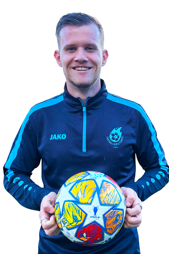 FOOTBALL DIRECT SHOTS is opgericht door Lorenzo van Slimming (1999) – UEFA C-trainer en oud-speler van onder andere Almere City, FC Volendam, Jong SC Cambuur. Met een achtergrond in Sport & Bewegen én jarenlange praktijkervaring op het veld, weet Lorenzo precies wat jonge spelers nodig hebben om te groeien.